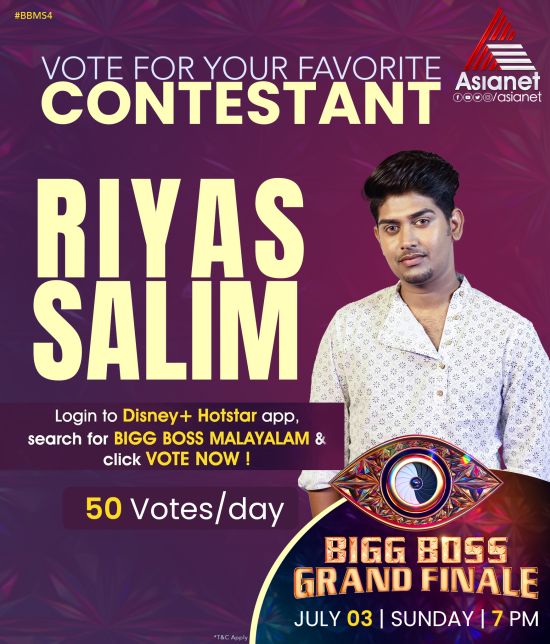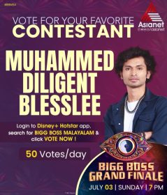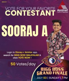 | ബിഗ്ഗ് ബോസ് ഫൈനല്വോട്ട് | മത്സരാർത്ഥി | ഹോട്ട്സ്റ്റാര് ആപ്പ് ഓണ്ലൈന് വോട്ടിംഗ് |
